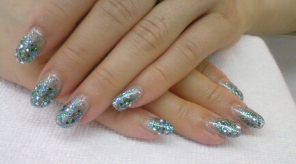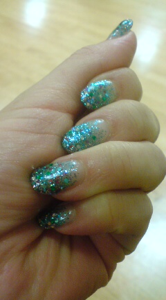 そして、小さめの丸スパンコールのブルー&グリーン&パープル&シルバーで、夏っぽく涼しげでCOOLな感じにしてみました( ̄▽ ̄)v