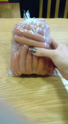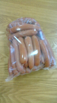 結構積めれるんですよ(笑)ウィンナーとウィンナーの隙間をウィンナーで埋めていくと、みるみる袋がパンパンに・・・入りきらなくなったので、今度は横に積める・・・ヤバい・・・袋がしまらなぁ~い(;□;)!!