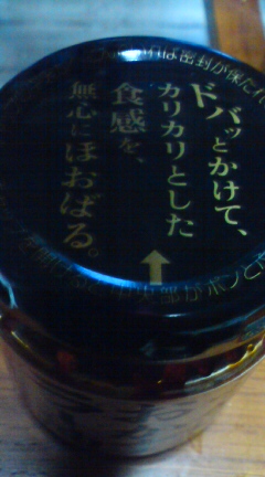 見ると《ぶっかけ!おかずラー油》とのネーミング(o^-’)b蓋には『ドバッとかけて、カリカリとした食感を、無心にほおばる』と、書いてあります( ̄ー ̄)
