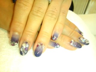 ◎青と赤と黒を調合し、濃いめの紫グラデーションをベース